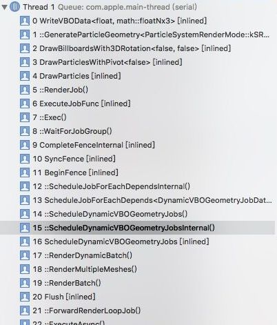 (true),同时对技能特效粒子系统停止时调用stop()修改为pause()(技能特效播放完后就回收到pool中,所以调用pause()不会有残留,此时不需要释放数据,在切换场景时真正释放特效数据),这时我从崩溃栈看到信息首先想到的修改应该是stop()修改pause造成的崩溃,我让程序同学帮我在iOS上挂机复现这个问题,果然连续2次挂机打怪都复现了,8-12分钟内必崩,崩溃栈和bugly上统计一样。