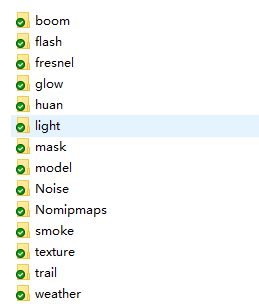 特效的贴图组织结构通常是按照效果来区分,比如下图所示的文件夹区分方式: