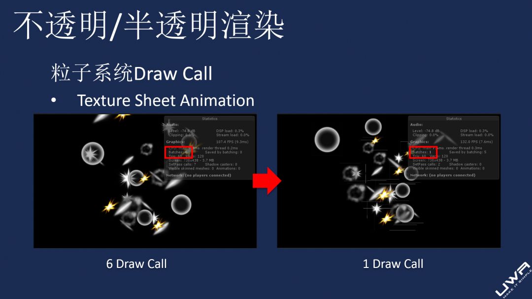 UWA:游戏特效中的Draw Call如果研发时间允许,还是建议合批,特别是针对出现频率大致相同的特效。对于粒子系统,建议考虑Texture Sheet Animation功能,这个我们在今年的UWA Day上有详细讲过,题主可以通过Google查一下它的使用方法即可。