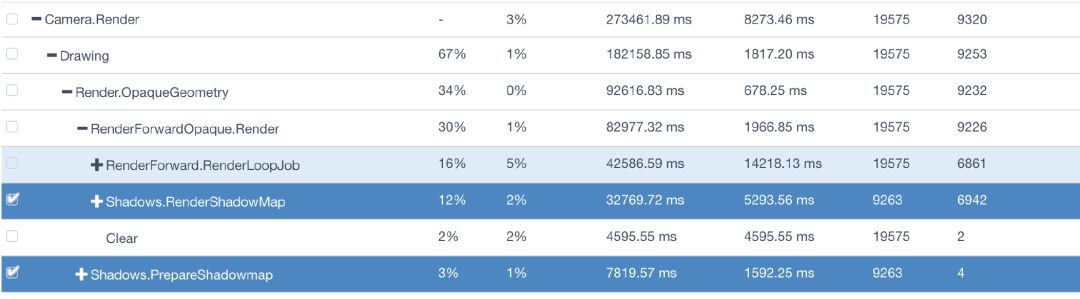 Q:代码堆栈中的Shadows.RenderShadowMap的耗时比较高,怎么优化呢?