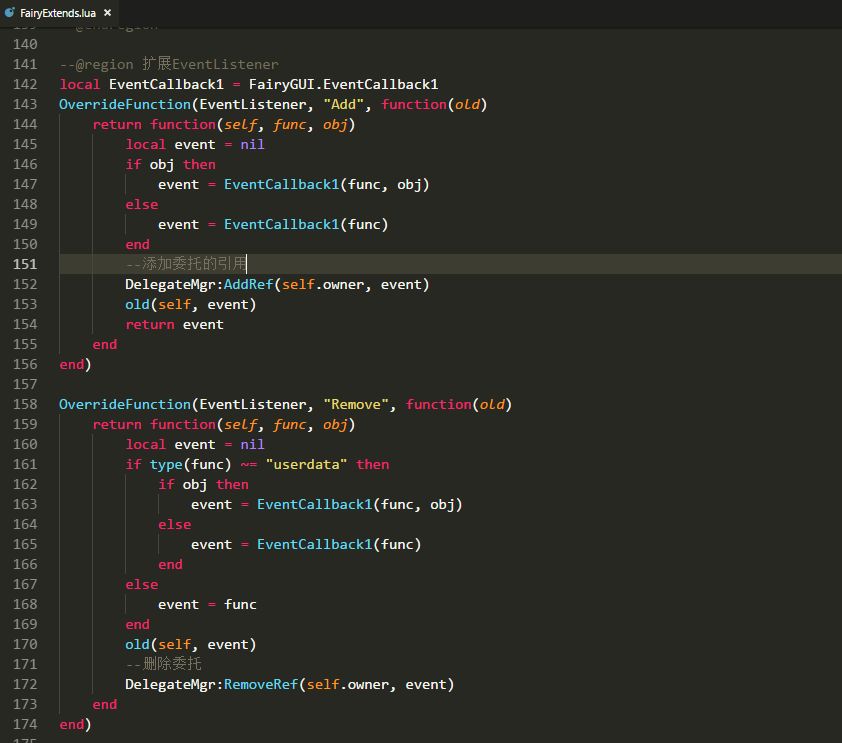 2)通过覆盖FairyGUI的一些方法, 使Fairy创建的委托纳入DelegateMgr中管理。