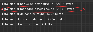 Q:在使用Unity官方的Memory Profiler进行测试的时候发现收集到的ManagedObjectSize和Profier显示的已使用托管堆的UsedHeapSize差距很大 ,UsedHeapSize是ManagedObject Size的十倍左右,是什么东西没统计到吗?