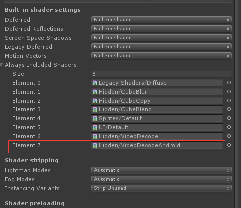 A:adb命令连接手机获取Android系统Log才发现ReportException: UnityLogError Could not find material Hidden/VideoDecodeAndroid 异常,查看本地手动的GraphiceSetting发现没有这个Shader的设置。