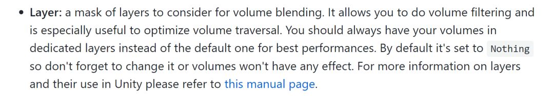 这个Layer跟Unity其他地方的Layer作用类似,是用来做Filter的,所以渲染的效率是不影响,但是对于不需要Bloom的相机还是可以设置一下把它屏蔽掉,这样可以更高效。