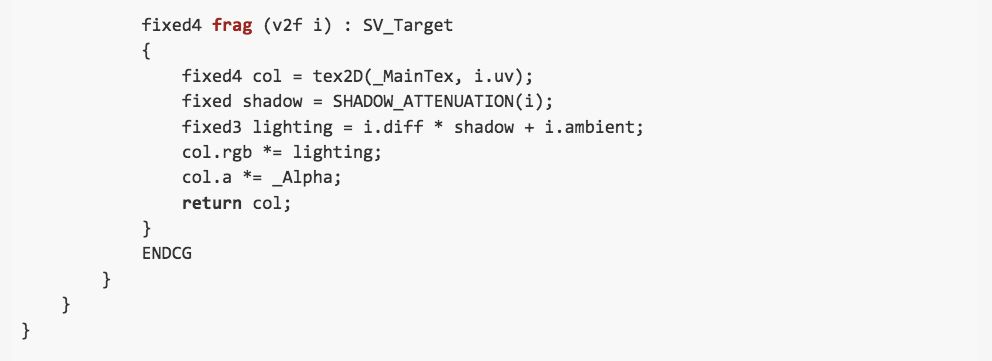 Q:当"RenderType" = "Transparent"的时候貌似是没有办法接受阴影的。我们需要在场景中做一层半透的地表, 来掩盖模型和地表之间的接缝,所以需要显示阴影, 请教各位大佬有什么好的方法吗?另外我想了解下为什么半透明物件默认不能接受阴影呢?