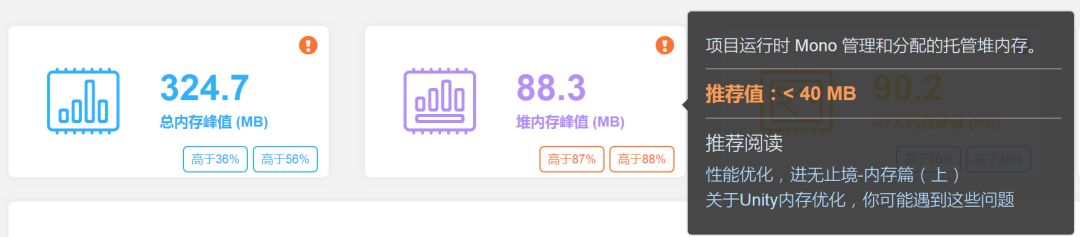 对于手游,UWA建议Total Mono堆内存峰值小于40MB。