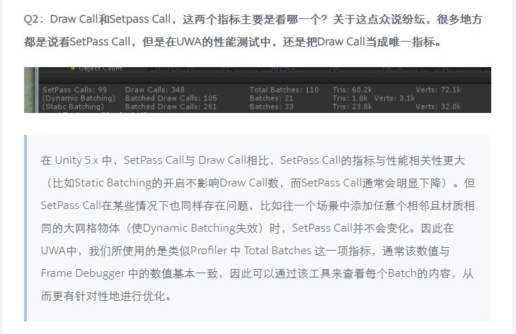 Q:我在UWA博客上看到这个问答,有点疑惑,为什么Static Batching不影响DrawCall数?