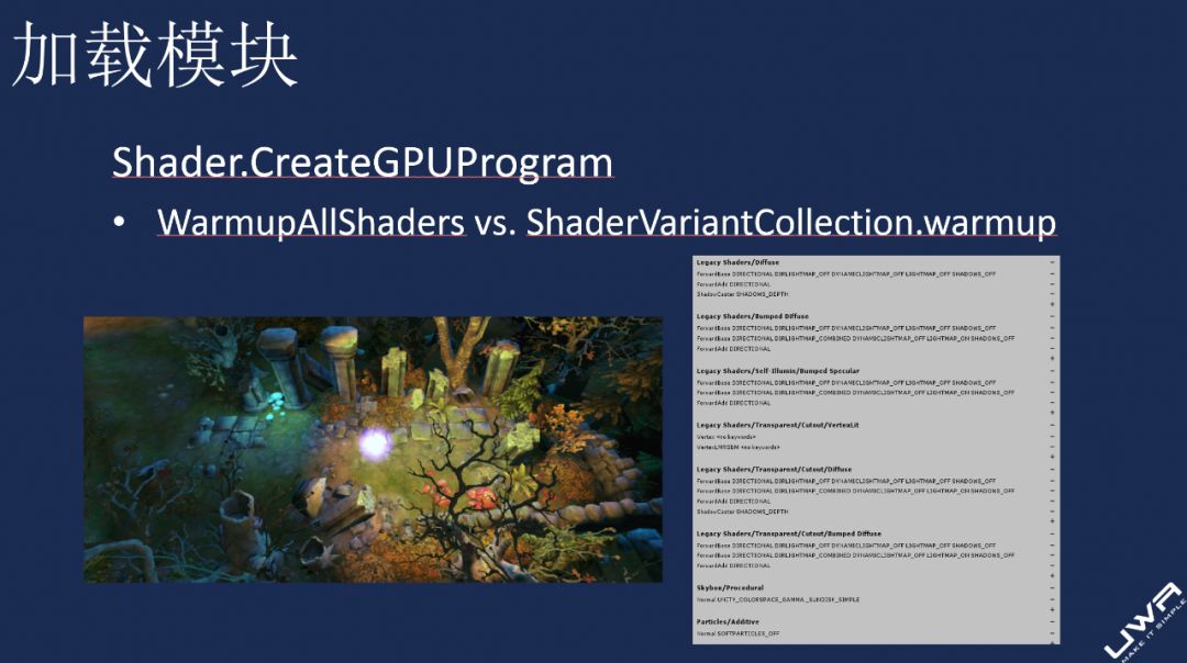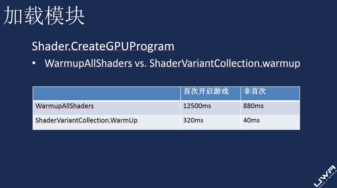 另外,我看到在题主的代码中调用了大量的WarmupAllShaders这个API,它的开销其实很大,并且每次加载Shader后都调用会造成大量的重复解析浪费,建议后续通过ShaderVariantCollection.warmup API来代替。
