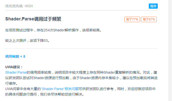 Q:我的UWA性能测评报告中反馈Shader.Parse调用过多,改了多次没什么起色,请问该如何优化?