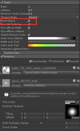 Q:我用的是Unity 2017.1.3版本,特效人员在粒子系统上使用了trails模块,然后为了形成拖尾要使用world space,结果在游戏中发现整个粒子包围盒计算出了问题,导致剔除操作时出错。而且是离原点越远偏差越大,特效在原点就没偏差。请问有没有解决的方案?