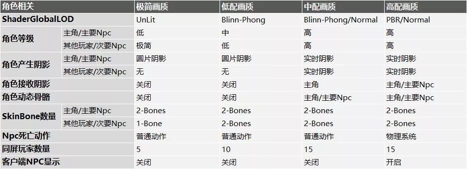 1)画质的表现力与性能开销是相互矛盾的2)需要持续维护,相关功能系统的设计都需要考虑到不同画质3)极简画质牺牲了可玩性,同时会增加LOD框架的复杂性,使用最简单暴力的方式去处理