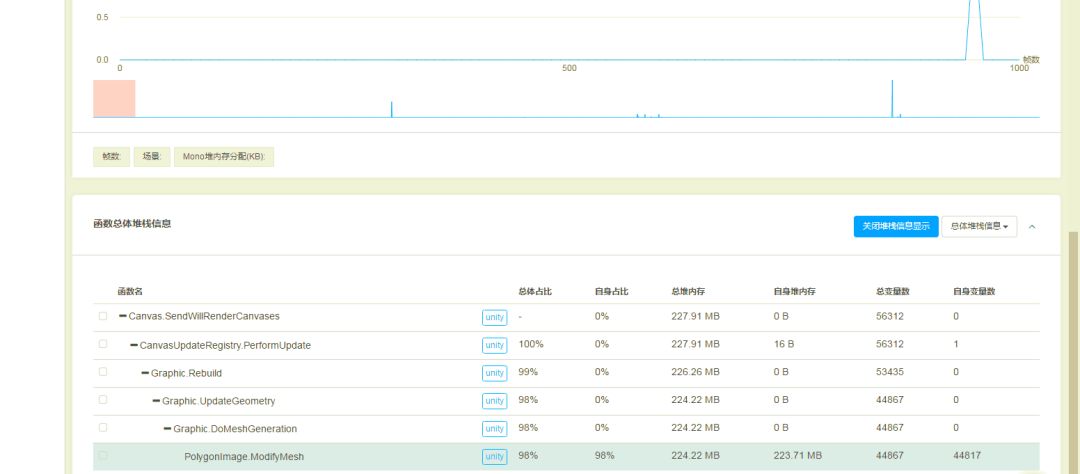 而题主在UWA GOT中没有观察到这一项,很可能是因为没有打开(激活)某些使用了PolygonImage的界面。