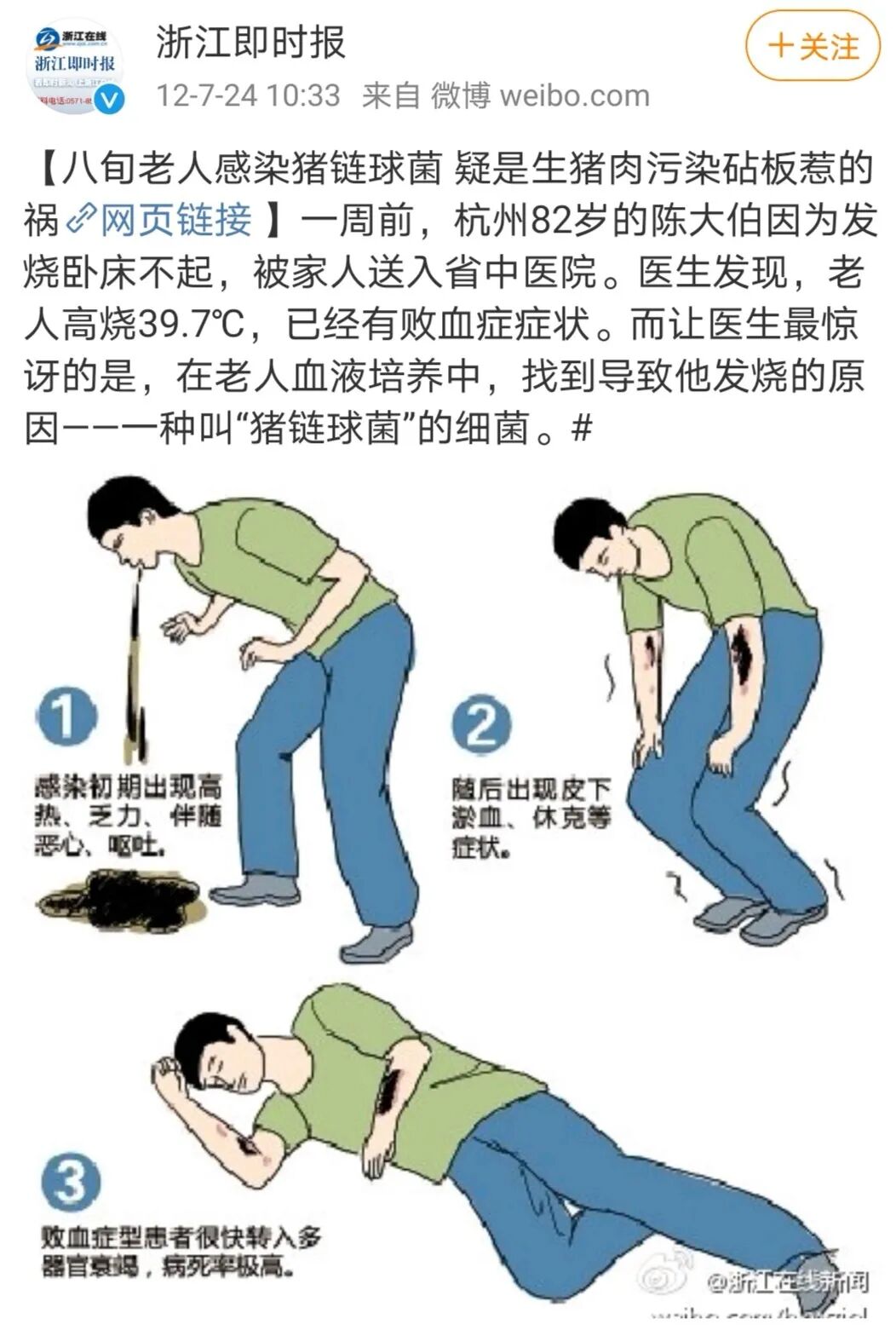 之前,杭州一位82岁的大伯,高烧卧床不起,有了败血症的症状。医生在其血液培养中,找到了导致他发烧的原因——猪链球细菌。