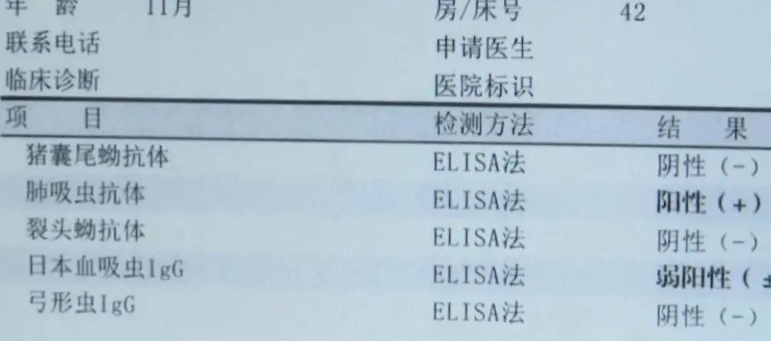 所以,立即要求家长给孩子做了各项检查。当结果出来后,直接吓了所有人一跳:男宝「肝吸虫」结果显示阳性、「日本血吸虫」显示弱阳性以及「肺吸虫」呈阳性。