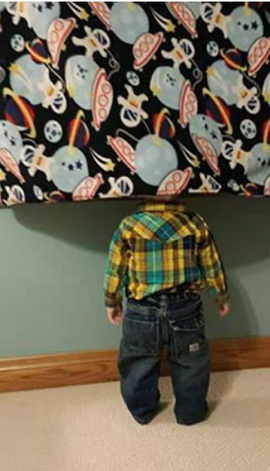 其实藏起脑袋已经算是尊重游戏了,有些宝宝更“敷衍”,只是捂住自己的眼睛,然后高喊“妈妈,来找我呀!”