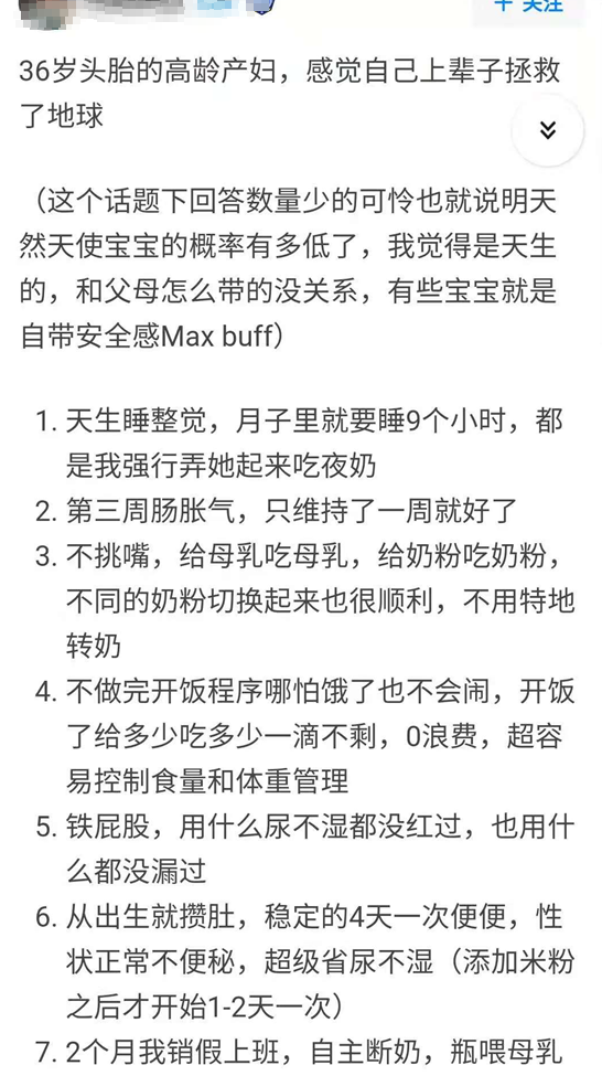 也难怪有宝妈自嘲:“天使宝宝的父母上辈子拯救了地球,而我上辈子大概毁灭了地球!”