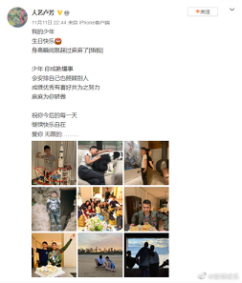上周胡军儿子康康12岁生日,胡军妻子在微博晒出康康近照, 并透露康康身高已经超过自己。