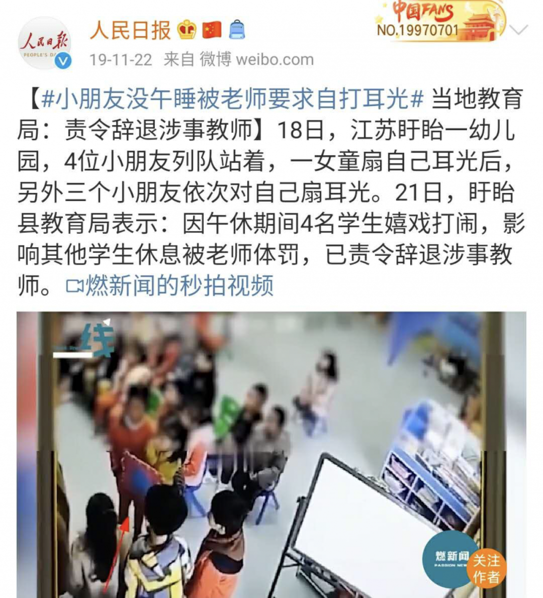 之前小康君看到一则新闻, 因为幼儿园小朋友不睡觉,在午休时嬉戏打闹,被老师要求自打耳光。