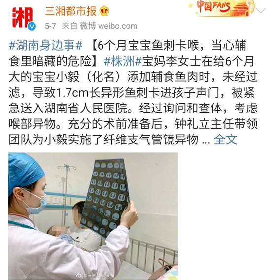 今年株洲一位宝妈在给6个月的宝宝喂食鱼汤时,一时大意没有过滤鱼汤,导致孩子被鱼刺卡喉,孩子咳嗽气喘、呼吸急促,还好就医及时,否则将酿成重大悲剧。
