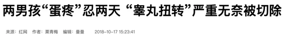 还有2018年长沙市中医医院收治了两位睾丸扭转的小患者。一名10岁,另一名15岁,均是下体发生剧烈疼痛,出现睾丸扭转迹象后未及时就医,导致单侧睾丸坏死,不得不接受睾丸切除手术。