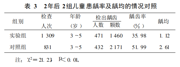 ● 结果2年后对照组的患龋率明显高于实验组, 说明涂氟对降低患龋率是有效的。