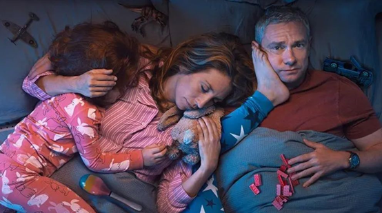 就像英剧《养育者》中的保罗夫妇,看看海报上女儿在爸爸头上撒尿,儿子躺在地上撒泼打滚的场景,是不是熟悉到想哭?