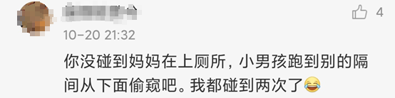 对于网友说的小男孩跑到别的隔间从下面偷窥的情况,小康君也遇到过,当时那个心情瞬间爆炸。