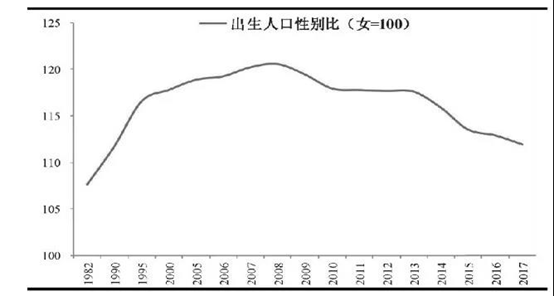 从国家统计局数据看就更明了了,直到2017年,男女比例仍然处在失调的状态,即男女比例为111.9:100。
