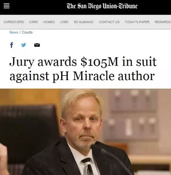 首先小康君要说的就是“酸碱体质”理论的创始人(Robert O. Young),早在2018年被判罚 1.05 亿美元(这数额,连底裤都罚没了)。