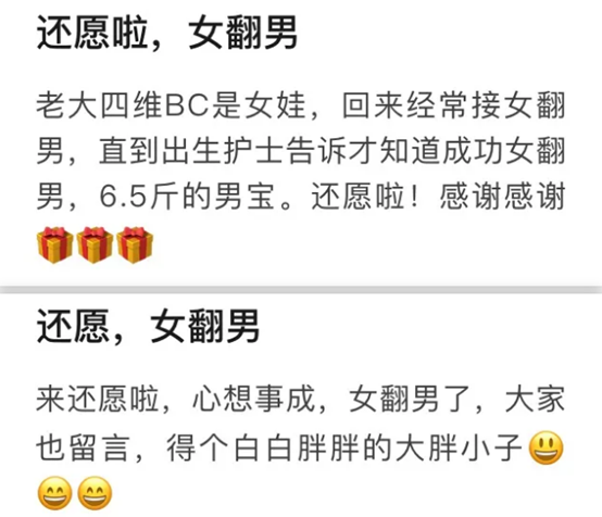 原以为她们只是图个好彩头,没想到她们竟然当了真。不少宝妈生完后再次留贴:还愿啦,大家也留言。