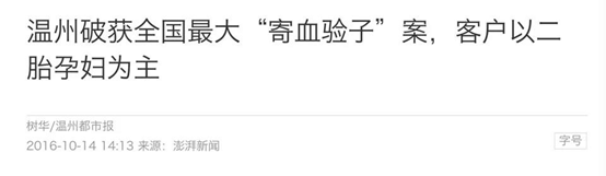 比如2016年,浙江温州的一起“寄血验子”案,涉及全国30多个省市,5万多位孕妇,孕妇以二胎孕妇为主,涉案总金额超过2亿元!