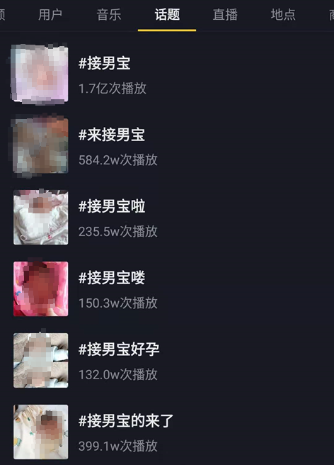 不得不说,这种刷屏祈祷真的太魔幻了!更魔幻的是这种接男宝的话题播放量,高到令小康君诧异(也有接女宝,但播放量远远不及接男宝)。