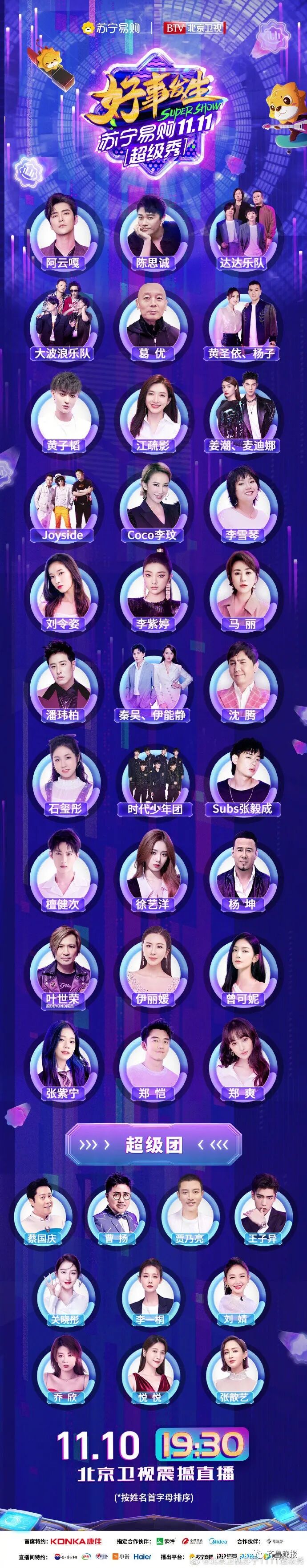 今年北京卫视联手苏宁易购在11月10日19:30—00:10 开启《苏宁易购1111超级秀》。