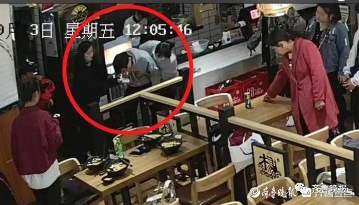 监控视频显示,10月23日上午11时左右,救人的女士与她的朋友来就来到了店里,并开始点餐就餐。救人的女士扎着马尾辫,穿着灰色的上衣和黑色的裤子,穿了一双白色鞋子,年龄大约20岁左右。与她来的女士穿着一件牛仔外套和黑色裙子,穿了一双皮鞋。