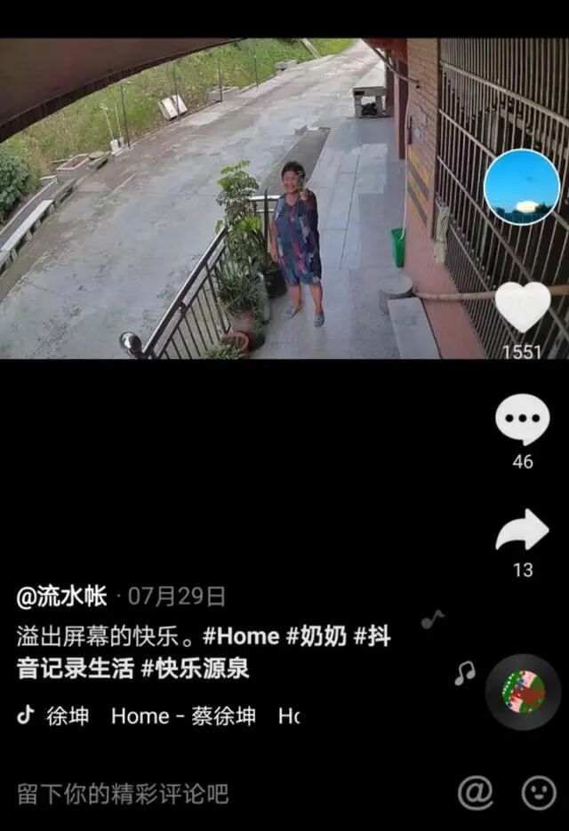 视频里,隔空对话的主角是一位有着孩子般笑容的奶奶,她通过安装在自家门前的监控,和远在千里之外的孙女语音聊天。奶奶特别可爱,冲着监控摄像头举起了刚摘的花、捡到的路边石头、新买的衣服,开心满足的神态好像是个等着被孙女夸奖的小孩子。更加催泪的是视频上孙女打出的文字:孙女告诉奶奶,不要总坐在门口,奶奶却说,这样你们就可以看见我。奶奶还开心大笑冲着监控镜头比了一个耶的手势。