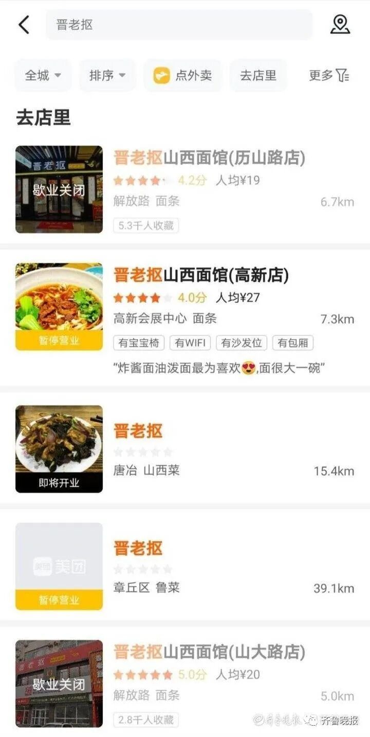 “三家晋老抠店应该都关了,最先关店的是高新区那家店,山大路店和历山路店先后关闭的。”