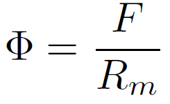 Φ是磁通,F是磁动势,Rm 是磁阻。