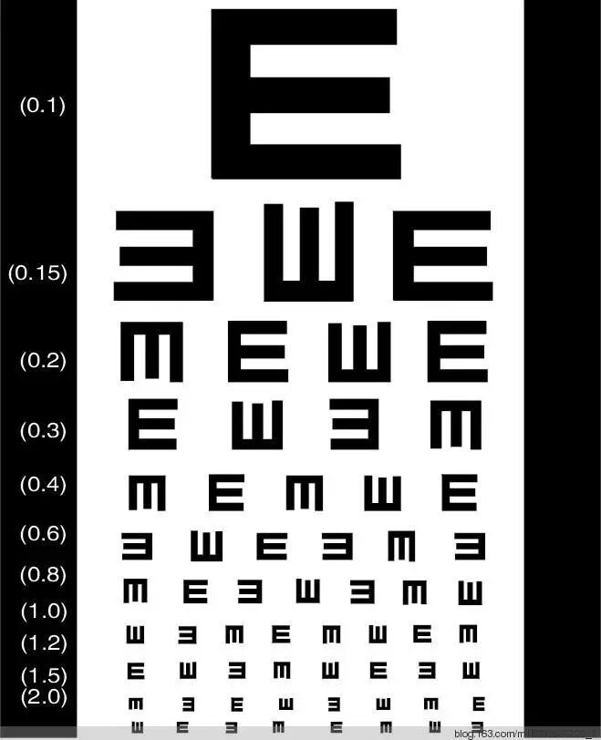 但是验光师会让你从镜子里看视力表