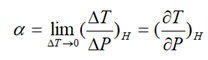 这是一个等焓过程,温度虽压强的变化可正可负,通常用焦汤系数α来研究节流膨胀过程前后温度和压强的关系。