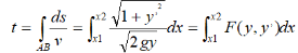 下面需要对时间求极值,以得到最短时间对应的y的方程,利用欧拉方程求解,最后得到: