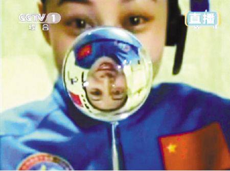 中国宇航员在太空舱做实验。