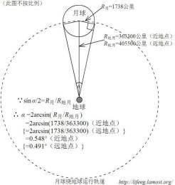 所以,只要地球的像形成的视角和月球的视角一样就能保证地球的像看起来和月球一样大。我们知道地球的直径是月球的3.68倍,所以只要像距离地球是地月距离的3.68倍就可以了,也就是约1398400km(取地月距离380000km)。我们又知道,平面镜所成像和物是关于平面镜对称的,所以巨大的镜子需要摆在像和地球的中间位置,也就是距离地球699200km的位置。关于镜子的大小(保证在一个固定点上看到整个像),可以从下图看出。