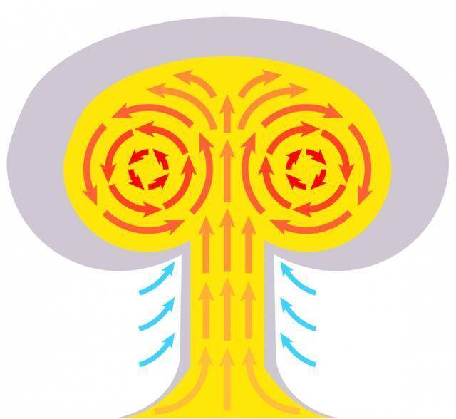 严谨一点地说,不是所有核弹爆炸都会产生蘑菇云,反例比如地下的核爆。现在我们考虑最容易产生蘑菇云的情况——近地表核爆。
