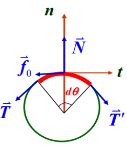 的微元,它在法向和切向都是受力平衡的,由此给出下面两个式子。