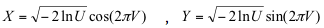 一些命令可以产生高斯分布的伪随机数。其中一种经典的方法是Box-Muller算法。其基本思路是产生两组独立的随机数U,V。这两组数据在(0,1]上均匀分布,再用U,V生成两组独立的标准常态分布变量X,Y