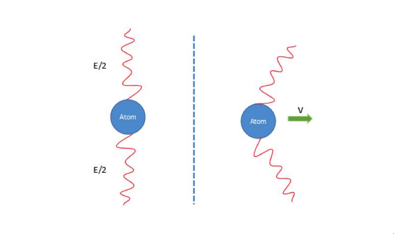 根据经典电动力学,每个光脉冲具有的动量为E/(2c),在v方向上的动量还要考虑光行差角,两个光子总的动量即为v×E/c2。这应该是原子损失的动量,那么原子损失的质量为E/c2。这就导出了质能方程E=mc2。爱因斯坦的伟大在于看到了方程背后的物理:即能量变化总是伴随着质量变化,反之亦然,和变化的机制无关。质量和能量乃同一事物的不同侧面,在广岛和长崎被惨烈地证实了!