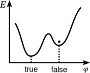 经典来看,—个粒子是可以静止在伪真空的点上,但是在考虑到星子修正的时候,粒子是有—定的几率隧穿到真正的真空上去的,这个问题是路径积分的—个很好的例子。