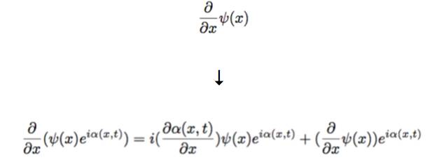 那么当我们改变波函数的相位(并且把这个相位α取成时间和空间α(x,t)的函数)的时候,我们发现薛定谔方程的形式改变了,这是因为