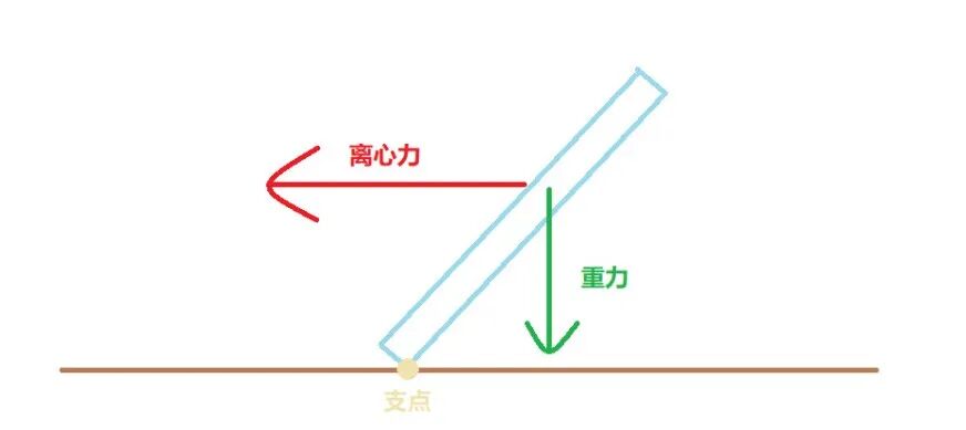 当摩托车倾斜的时候,原本因为作用线经过地面支点而不产生力矩的重力也会相对支点产生力矩,当倾斜角度保证这个力矩恰好等于离心力力矩的时候,摩托车所受合外力矩为0,所以就可以保持平衡了。