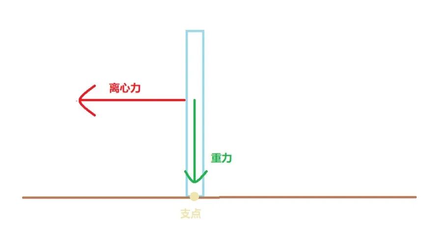 一个物体如果想保持平衡,必须满足两个条件:合外力为0,合外力矩为0。在摩托车高速拐弯时,需要非常大的向心力,这部分向心力由主要由轮胎摩擦力提供,在相对摩托车静止的非惯性系中,离心力等于摩擦力,保证了合外力为0。但是,相对摩托车静止的非惯性系中,如果摩托车保持竖直,则相对地面支点只有离心力产生力矩,摩托车很容易向离心力方向侧翻造成事故。